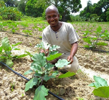Pemba farmer Rubea uses irrigation installed by the Pemba Foundation