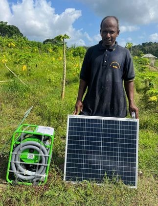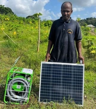 Rubea has had one of our systems for a few years, but we're asking him to try our first solar-powered pump. If it works out we'll stop using gasoline-powered pumps in future.