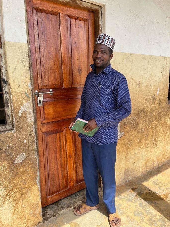 First steps in renovation at Maziwa Ngombe: headmaster with new classroom door.