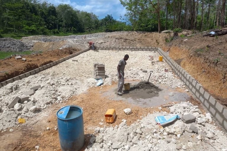 Not a swimming pool but a tilapia pond being built by Ali Issa, a young Pemban who qualified in aquaculture on the mainland, whom we are supporting to start aquaculture in Pemba.