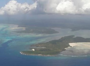 Approaching Pemba from the south in typical rainy season weather. The reefs and lagoons of Pemba's west coast are a biodiversity hotspot.