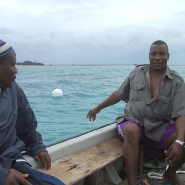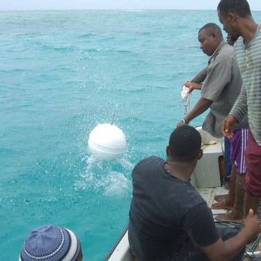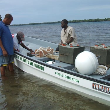 As a result of the meetings, in 2017 we set out the buoys to mark a new MPA, closed to fishing and patrolled by community rangers in a boat provided by the Pemba Foundation. This area -- the first in an intended multi-area program -- was created at the request of Gando village, whose representatives had attended the meetings, and set up in co-operation with the Fisheries Department and the Zanzibar Institute of Marine Sciences (IMS). From IMS, Dr. Saleh Yahya trained Gando's rangers, while Dr. Narriman Jiddawi created a catch-reporting system.
