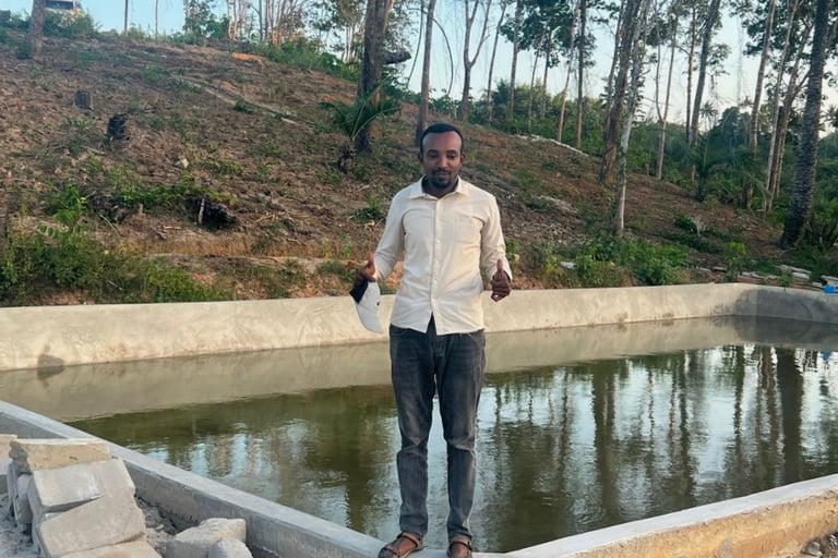 Ali Issa, a Pemba native who trained in aquaculture on the mainland, suggesed this project to us. We supported him as he built the first two ponds and stocked them with 10,000 inch-long tilapia fingerlings. Then early in 2025 Ali died suddenly and unexpectedly. Ali's family agreed that the best way to honor his memory was to continue with the project that he had started so enthusiastically.